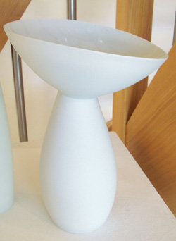 TEXTUR UND KLARHEIT André Chaplya (Malerei/Objekte) und Roswitha Winde-Pauls (Keramik)Die Keramikerin Roswitha Winde-Pauls sagt über ihre Arbeit, dass sie das durchscheinende Material Porzellan herausfordert. Es zeigt technische Tücken und lockt durch seine Feinheit besondere Formgebung und Gestaltung hervor. Ihre auf der Drehscheibe gearbeiteten Gefäßunikate zeigen schlichte, klare Formen mit meist kleiner Standfläche. Überwiegend helle Glasuren lassen die Stücke leicht erscheinen. Ihre unglasierten Gefäße strukturiert die Künstlerin beim Abdrehen auf der Oberfläche oder mit farbigen Engoben. Einige der Arbeiten bearbeitet Winde-Pauls nach dem Brand mit Silberfäden oder feinen Kunststoffnetzen, so dass Porzellan und Ornament fein kontrastieren Winde-Pauls studierte bei Prof. Volker Ellwanger freie bildende Kunst.